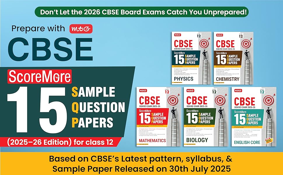 MTG CBSE Class 12 ScoreMore 15 Sample Papers Physics, Chemistry, Mathematics & English Books For 2025-2026 Board Exam (Set of 4) | Chapter-wise Competency-Based Questions (CBQs) | Based on Latest CBSE Pattern & Syllabus